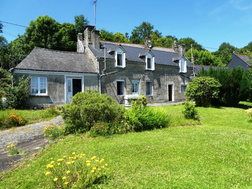 Town center; 2 steps from all amenities; Beautiful stone farmhouse with 4 main rooms. To refresh; it offers: fitted kitchen/dining room, living room with fireplace. Upstairs: 2 bedrooms, bathroom/wc. Also, adjoining, laundry/boiler room and kitchen, in stone; stone outbuilding, and a well. All on a very beautiful plot, with a superb view of the town of GUEMENE-SUR-SCORFF. Very rare, and very good opportunity... EXCLUSIVE, not to be missed...