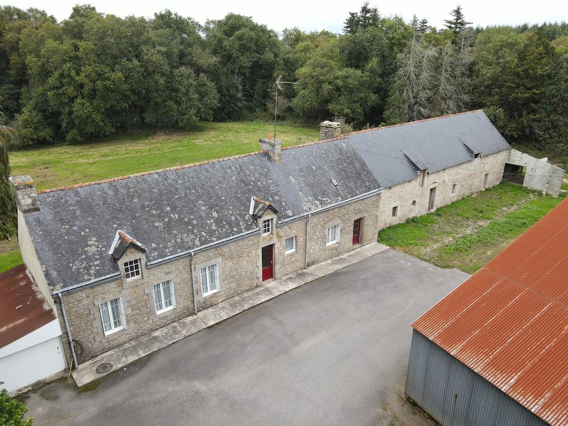 A PLOUAY (56240), dans le Morbihan, charmante propriété rurale à rénover, située en campagne, comprenant :