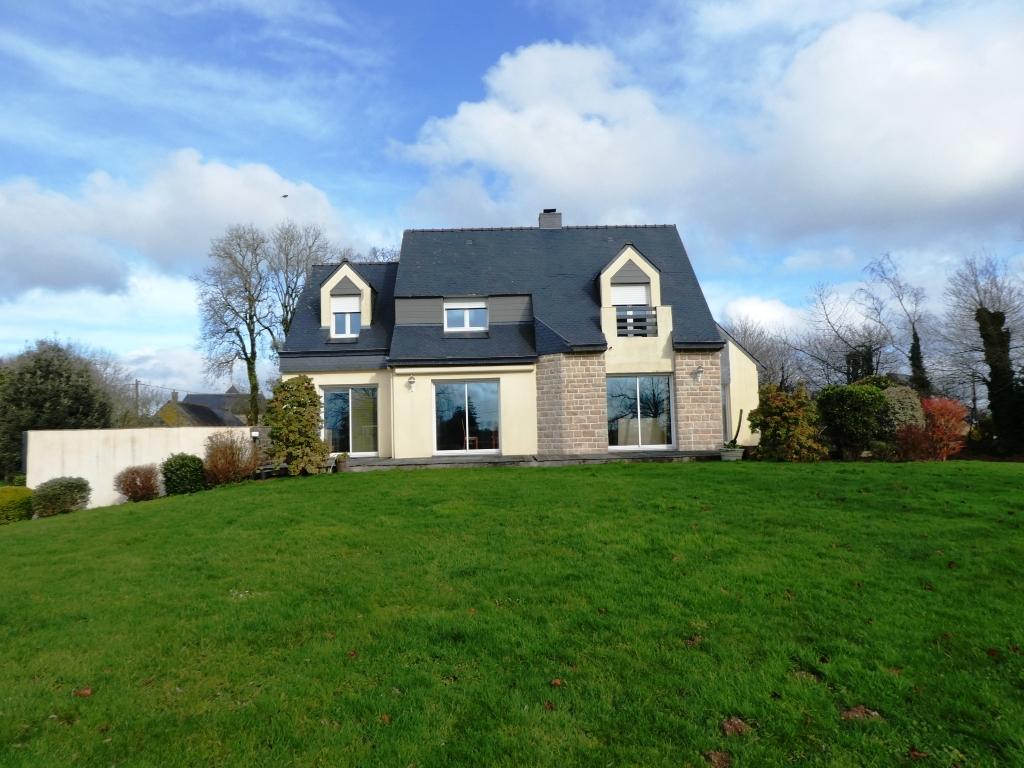 Tout proche de GUEMENE-SUR-SCORFF, et de toutes les commodités; belle et spacieuse maison contemporaine de 6 pièces principales. En très bon état général; elle propose: un sous-sol complet avec garage double, cellier, cave à vin, carport. En RDJ: salon/séjour avec cheminée (insert), cuisine aménagée, arrière cuisine/cellier, bureau, wc, salle d'eau, chambre. Et, à l'étage: pièce palière, 3 chambres, wc, salle de bains. Grenier au-dessus. Aussi, une dépendance en pierres sous ardoises. Le tout sur un très beau terrain d'environ 5000 m². Maison où il fait bon vivre... EXCLUSIVITE, à venir découvrir...
